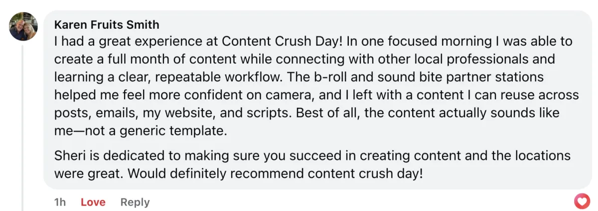 If you have been sitting on ideas, second-guessing yourself, or wondering how to actually turn your expertise into substantial content for your business, this is for you. You will: